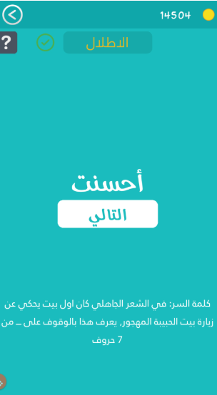 حل في الشعر الجاهلي كان اول بيت يحكي عن زياره بيت الحبيبه المهجور يعرف هذا بالوقوف على من سبعه حروف فى مرحلة من لعبة كلمة السر 2 صقور الإبدآع